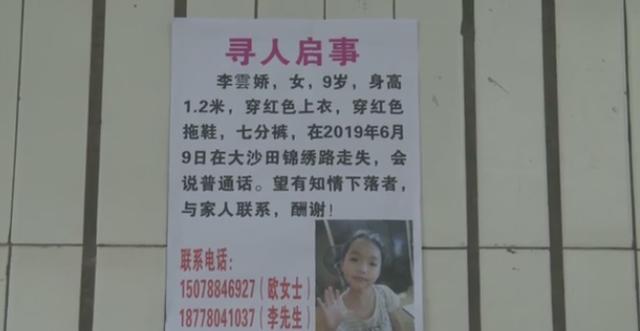 监控画面显示,李雲娇当时穿着一件红色T恤,一条粉红色短裤和一双拖鞋。离开后门的巷子后,她来到了锦绣路上,在一张长椅上躺了几分钟,最终横穿锦绣路,从镜头中消失。因为李雲娇的爸妈分居两地,直到6月11日,妈妈欧女士才知道孩子丢了。