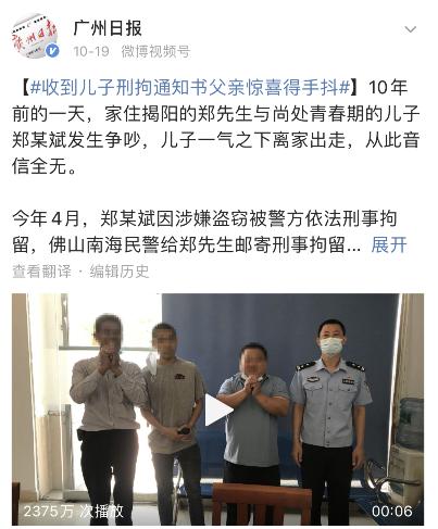 直到今年4月,才通过一纸《拘留通知书》获得儿子的信息。
