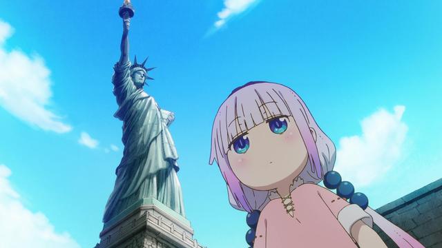 这一集的开头是康纳和小林吵架的搞笑场面,小孩子骂人都狠不起来,康纳酱甩门而去后,变成了龙新天离家出走,因为天黑想睡觉,所以康纳找了个方向就飞了过去,结果一飞就到了纽约(离家出走变跨国旅行?),康纳下地之后还特地把尾巴收了起来,外国的风土人情让康纳十分好奇,但作为旅行的龙,康纳第一个要解决的是吃饭和交流问题。