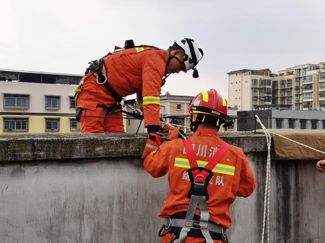 13时48分,“开始!开始!”随着各方救援准备完毕,对讲机传来行动指令,各组立即着手开展救援。13时50分,成功将男生救至安全地带。
