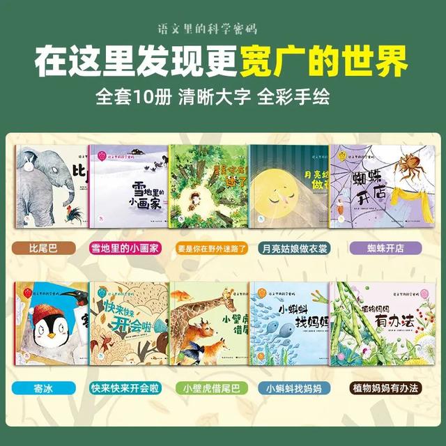 《语文里的科学密码》10本书,集结了国内知名作家冰波、程宏明、林颂英等的作品,都是小学语文教材、幼儿园教案同款故事。
